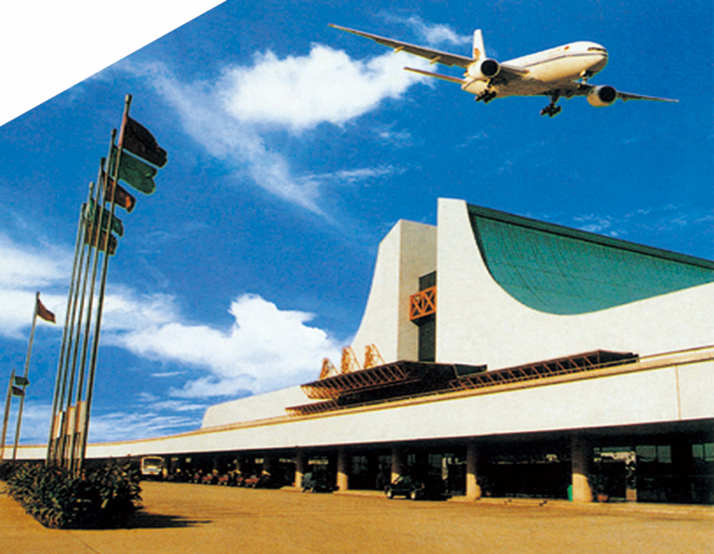 石家庄民航机场候机楼建筑面积26176㎡,为双层框排架结构,平面和曲面空间网格构造体系,一层为进港大厅、休息厅,二层为进港大厅、值机、安检等。工程项目包括候机楼和机场高架桥工程,高架桥包括高架平台和上下引桥,采用大直径钻孔灌注桩基础。该工程1994年建成,部级优质工程,获评石家庄市十佳建筑。