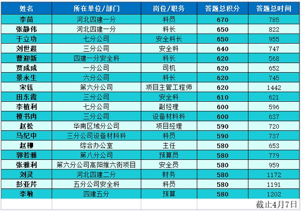 本次活动是继“复工安全培训第一课”后,公司着眼网络平台优势的又一次运用。安全管理部和宣传部结合职工使用微信较普遍的实际,联合推出了微信答题活动,以多样化的方式开展培训教育,提高了“安全培训教育月”活动实效。(安全管理部)
