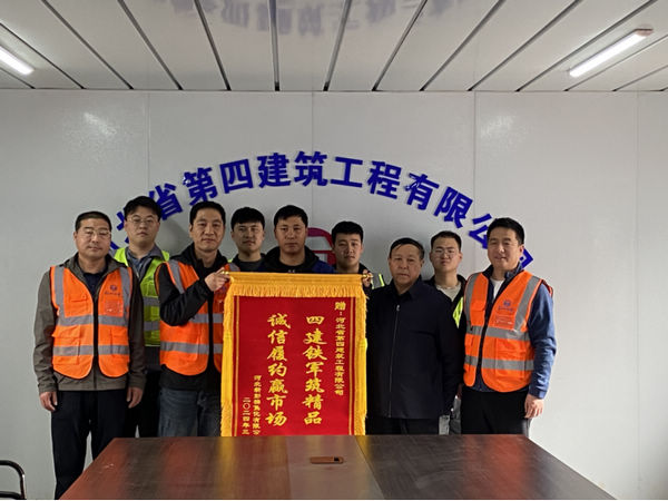 3月29日上午,河北普阳钢铁集团新彭楠焦化有限公司副总经理李文秀、新彭楠焦化项目负责人王磊,来到河北四建三分公司新彭楠焦化项目部会议室,感谢项目部春节不停工保送煤,高质量地完成节点任务,并郑重地将写有“四建铁军筑精品 诚信履约赢市场”的锦旗送到正在项目检查的分公司经理李书伟的手中。三分公司副经理刘赞敏、项目部经理甄雄浩等一同参加。